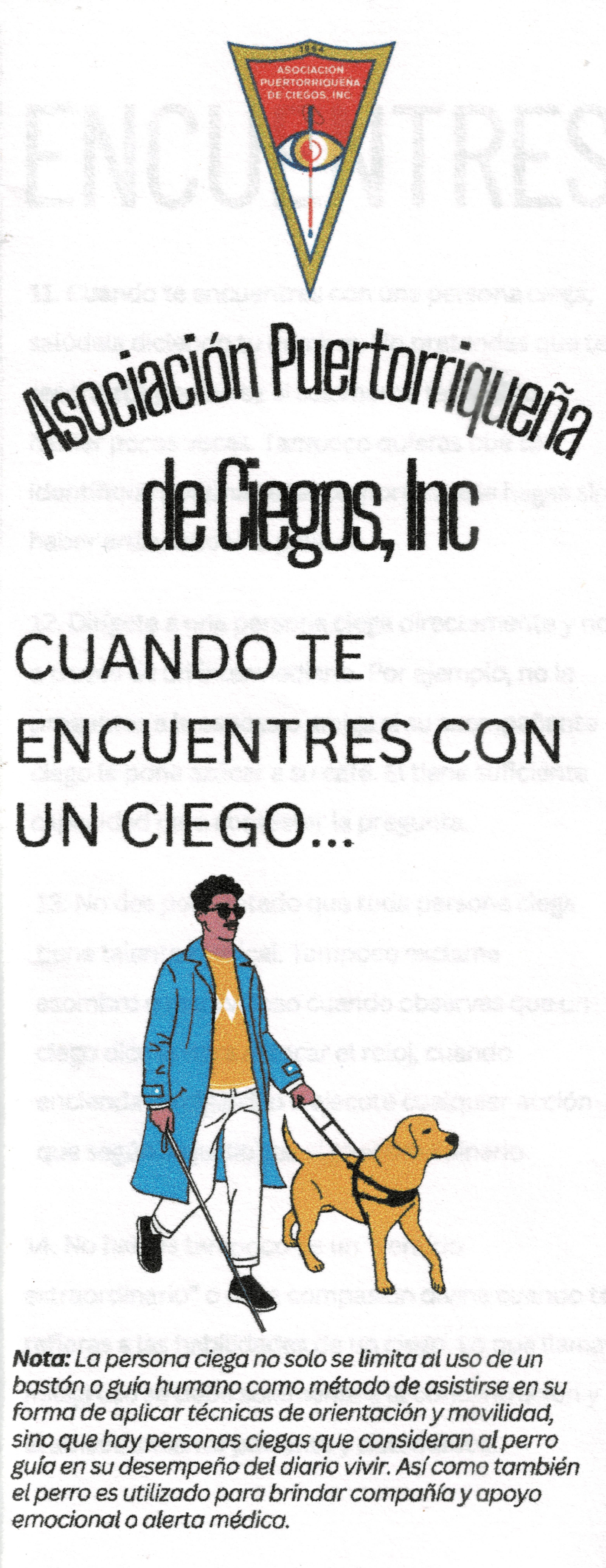 El/Ella necesita para poderse desenvolver debidamente. Tan perjudicial es al bienestar del ciego no prestarle la ayuda que necesita, como proveerla en exceso. La norma debe ser dar a la persona ciega